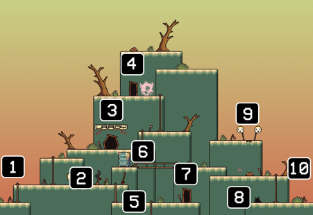 Pre-Area 1 • The List • Area 1 Crossroads • Lardy's Truck • Vega Land • Pacifist Village • Village One • Lower Crossroads • Joy Lab | ||