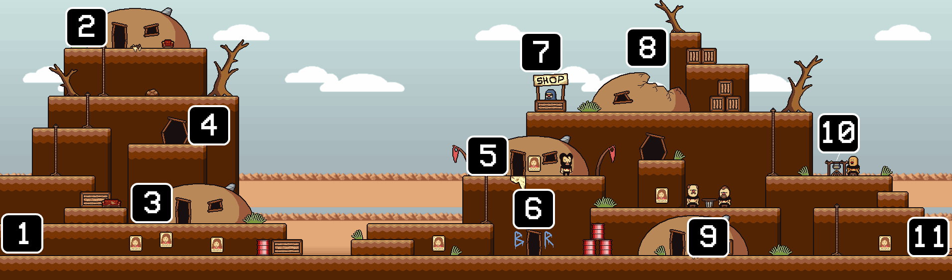 Pre-Area 1 • The List • Area 1 Crossroads • Lardy's Truck • Vega Land • Pacifist Village • Village One • Lower Crossroads • Joy Lab | ||
