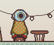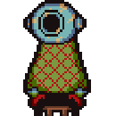 Bo is an odd man found in Muddy Waters. He seems to be very tall and wears a scarf to cover himself. He also wears a large blue helmet, similar to a diving helmet, to hide his face.