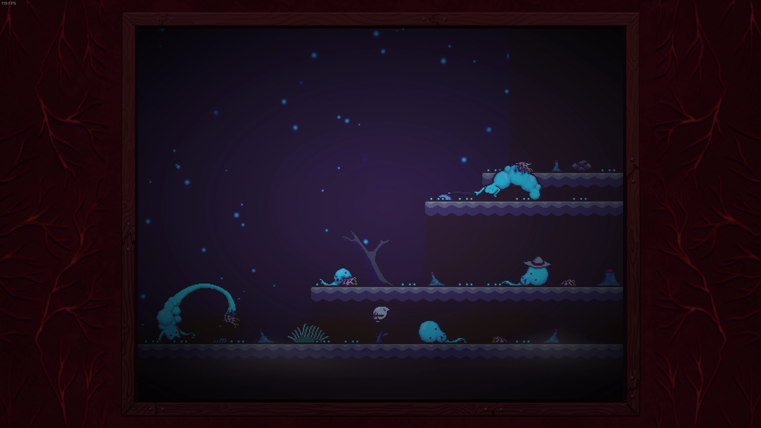 Going inside of Brad's House reveals a blue door in the basement, which leads to some long corridors lined with flowers. Brad will eventually come across a vision of Rando and Buddy. They will turn to him and shortly after transform into Marty and Lisa before disappearing. As Brad leaves this room, he will be ambushed by a monstrous vision of his own Joy Mutant form. He will wake back up near the campfire once more, this time with a thunderstorm taking place. The Hint near the fire now reads "Don't Wake Up". Walking left from here, Brad will come across a very tall rope. Climbing the rope will eventually reset your position. If you encounter the golden beams or you are moved, climb back down to continue to the next part of the dream.