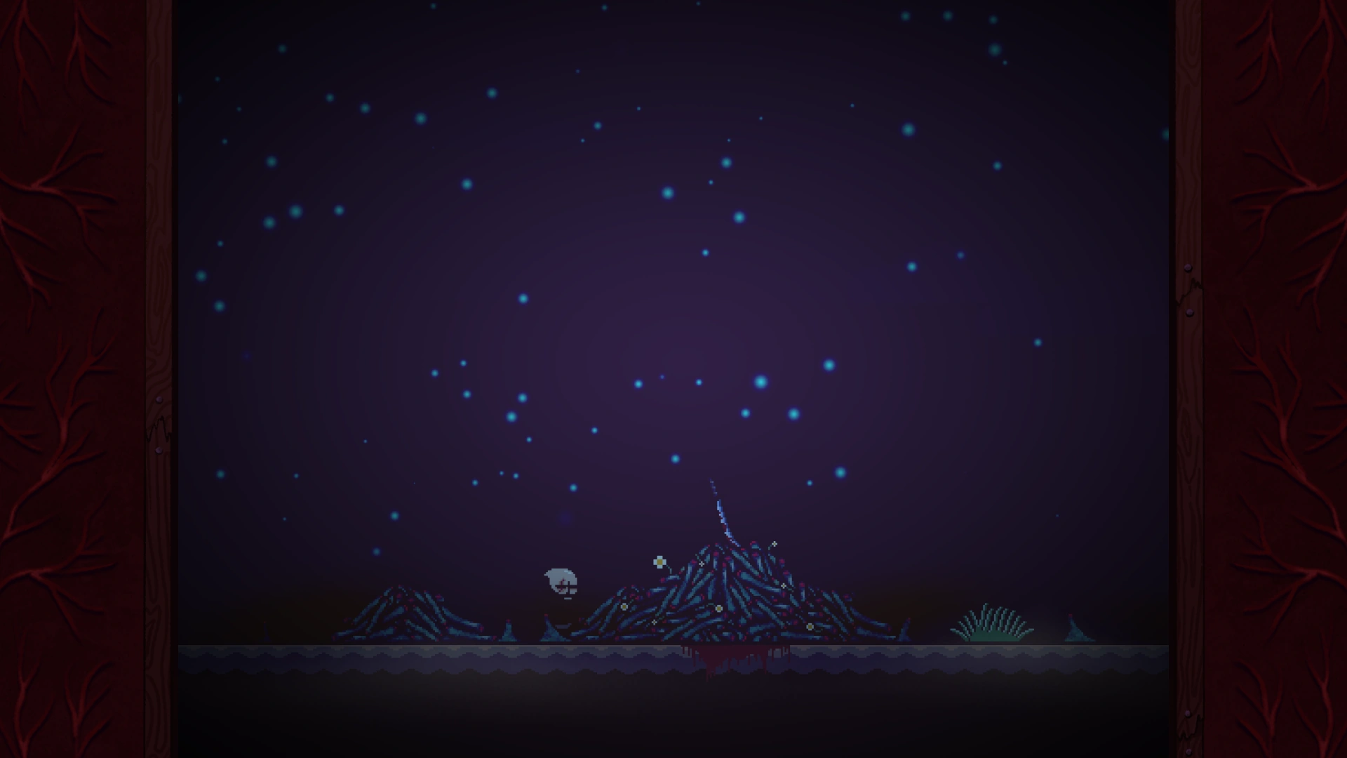 When reaching Brad's House, the sky will change to be lighter and full of stars. Just outside of Brad's House there will be what appears to be several Joy Mutants, with one of them holding a rake and tapping it on the ground; a lot of them seem to be wearing Rando's cut off face. Continuing left will lead to seeing Buddy's sabre on top of a pile of flowers and what appears to be wood, possibly from the Bloodmoon Tree. Even farther left, Brad can see a deformed version of Terry in fetal position. Neither of these can be interacted with. It is also possible for this "Nightmare Terry" to not be present at all, leaving a just a pile of blood in his place.