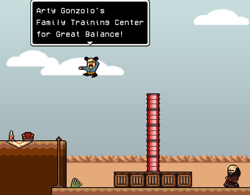 To the west of the Road To Construction, if the ropes above the entrance are climbed and the gaps jumped Dojo 2 can be found. In order to fulfill Arty's patience test, Brad must wait on top of the barrels for a total of 150 seconds (2 1/2 minutes). Once completed, Arty will automatically congratulate Brad on his patience and award him a Gonzalo Style Scroll, an item that adds 5 max Mp, and 5 max S.ATK.