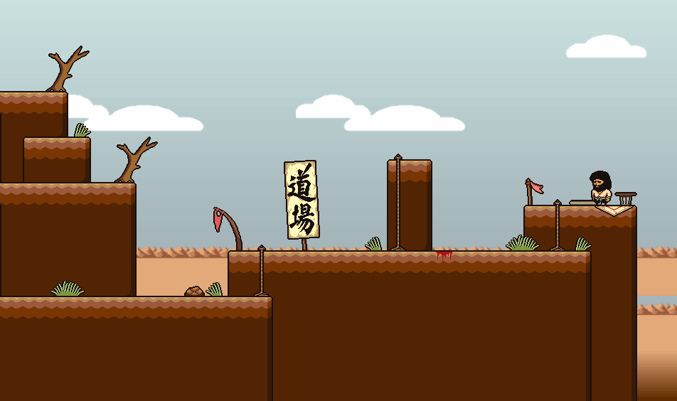 The first Dojo to be found is east of Aurora Town's Blackout Building. Here, Bill Muhammad can be found to the right. Upon posing, he will request Brad to fall of the adjacent cliff until he sees Brad's worth. Brad must then climb the rope and fall off the cliff 15 times in order for Bill to see Brads worth. Make sure you fall on the blood puddle side of the cliff, otherwise the falls will not count. This deals 10 damage each fall totaling 150 damage, so be careful. Once spoken to after this, he will reward Brad with the Muhammad Style Scroll, an item that adds 8 Max HP, 8 DEF and 8 Magic DEF to any party member.