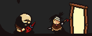 - In Definitive Edition, during the fight with the hallucination of Brad, the second sprite used of him is instead facing forward, topless. This was later updated to the old sprite of Brad holding Joy.