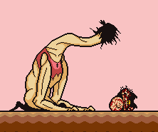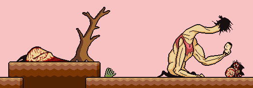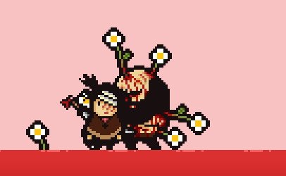 Buddy will black out and have a flashback of herself and Brad -- promising that she will be able to go out for the first time. Upon a sea of blood and flowers, is Brad, covered in scars as he was at the end of PAINFUL, with flowers in place of the arrows. A man that she hates and sees as a failure -- yet the man that loved and protected her.
