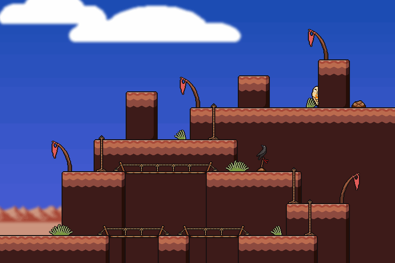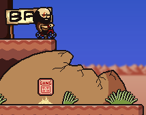 Once exiting the short cave, a hilly area is found, blocked off by Booker Clinton. To the left is a series of cliffs that can be jumped over by using the Bicycle leading to a water well. This can be used three times, having a 1/3 chance to provide a Bottle of Water and a 2/3 chance to provide a Bottle of Dirty Water. In order to proceed to the right, Booker must be defeated. Once defeated pick up a few stray Empty Bottles and use the Bicycle to jump over the gap.