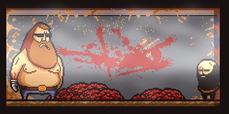 Once inside, Satan can be found standing near piles of meat, and walls smeared with blood and bile. Upon being approached, he will make a remark on how many people have died due to their curiosity, and initiates a fight.