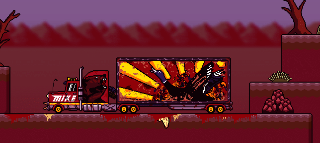 After a climb down a blood stricken mountain, the air transitions to a red haze, and the screams of men can be heard to the sounds of thumping metal on flesh. At the bottom is a large semi-trailer truck, with a bear printed on the truck and a duck printed on the trailer. The horn sounds as Brad approaches it, and he discovers the trailer door is locked. In order for it to be opened, the Key from the Bathhouse must be obtained.