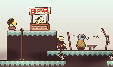 Continuing east will begin a flashback of Brad with his karate students and Dusty. Once this has been completed, continue east to the second area of Muddy Waters. A gap below a tree can be jumped down and transports Brad to Fishman Town.