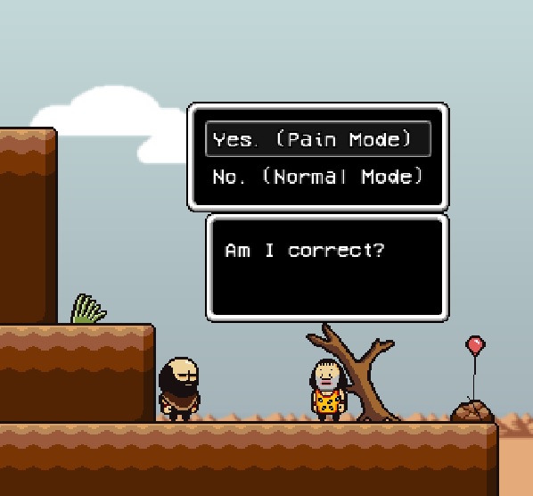 After saving Terry from Cheese Legs, he will claim that you look like someone who can handle a lot of pain, even some pain related difficulty setting. Then two options will appear. Choosing no will let the game proceed in Normal Mode. Choosing yes will activate Pain Mode. If playing on LISA: Definitive Edition's version of LISA: The Painful, Terry will have an additional dialogue option if the player is unaware of Pain Mode's changes to the base game. He specifically notes "encounters you haven't seen before" and "limited save points". There is no additional dialogue if you repeatedly ask him about Pain Mode.