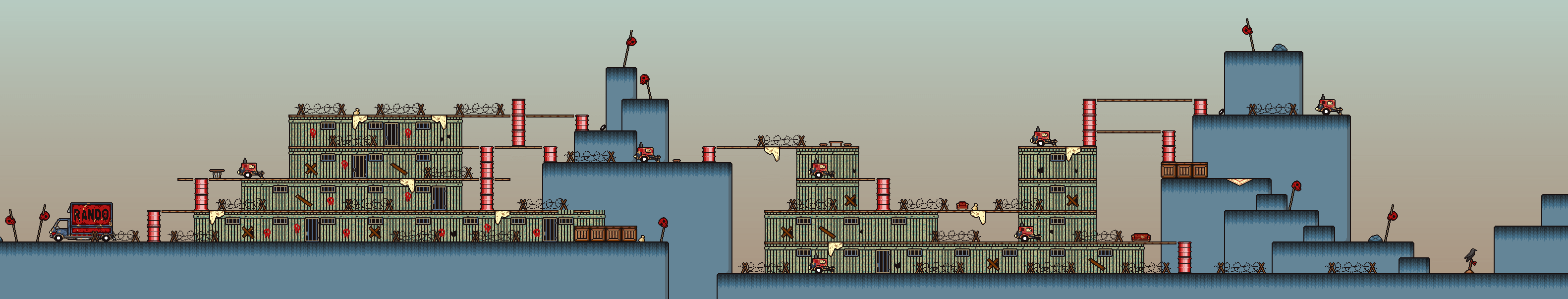Rando Land is the final area of LISA: THE PAINFUL, and the heart of Rando's base of operations. It is a vast stretch of land marked with what is possibly barracks and other armaments. Brad comes here after escaping from the Deserted Island to reclaim Buddy and stop Rando once and for all.