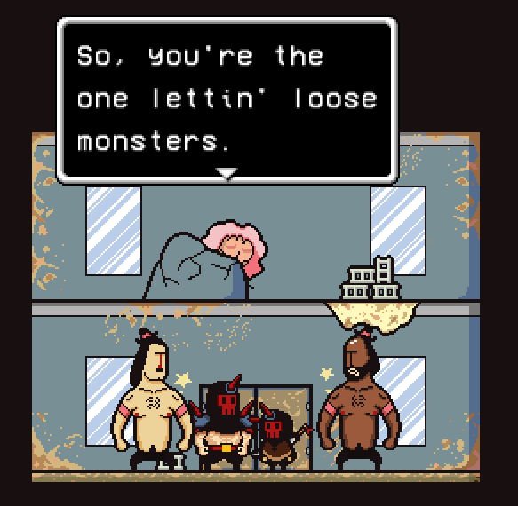 The first enemy, Joey Viper can be instantly killed if Buddy dashes off the platform above. If not he will initiate a fight.